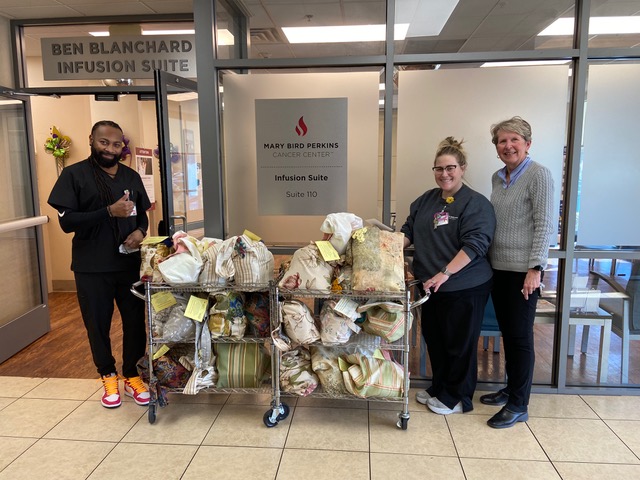 This is our 10th year of supplying 100 or more decorative bags of comfort items to the chemotherapy patients at Mary Bird Cancer Center in Covington, LA. Volunteers sew the bags with fabric donated by the Hosanna Quilters. Filler items such as fleece blankets , lotion, cozy socks, hats, puzzle books, memo pads, journal books, and mint candies are donated by church members. This ministry has touched the lives of many cancer patients over the years and given them some comfort during a difficult time. These bags are our way of sharing God’s love to our neighbor.